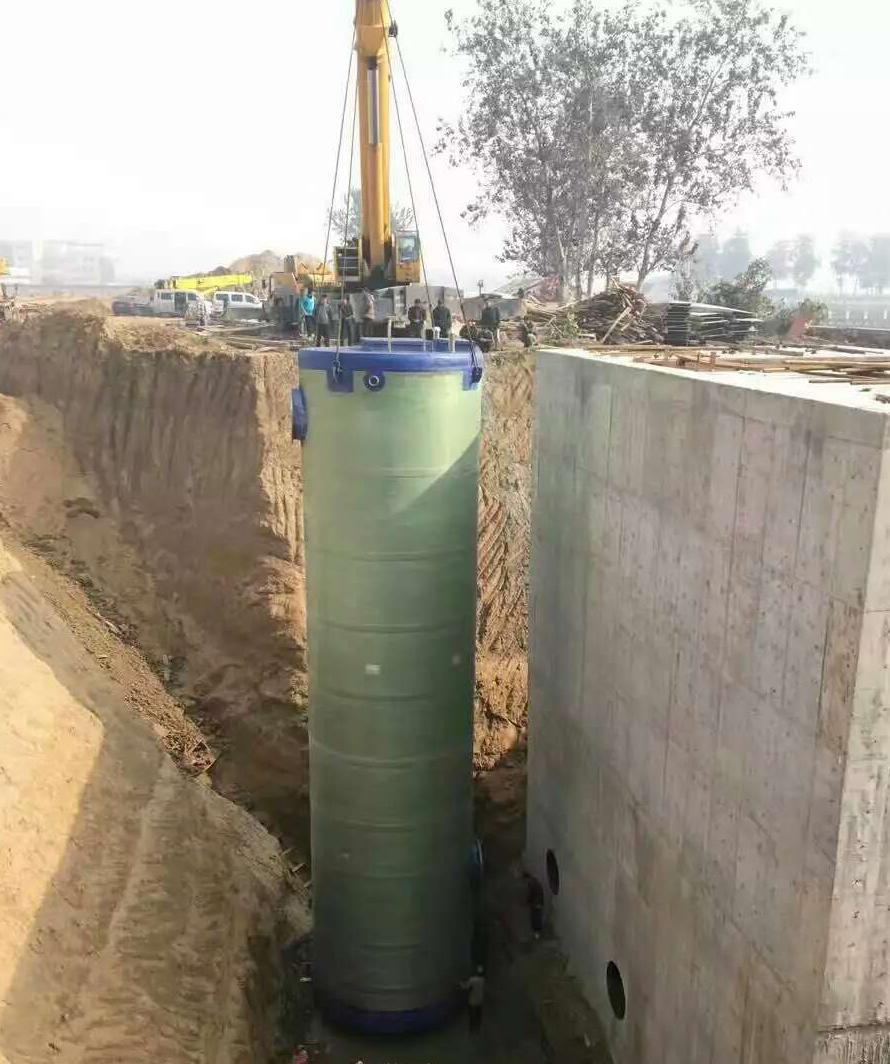 4、 新型材質:泵站筒體結構由纖維纏繞玻璃鋼(GRP)制成,采用意大利VEM公司設備,全自動化控制連續(xù)纏繞成型,確保厚度均勻并達到設計的剛度,質量穩(wěn)定優(yōu)良。