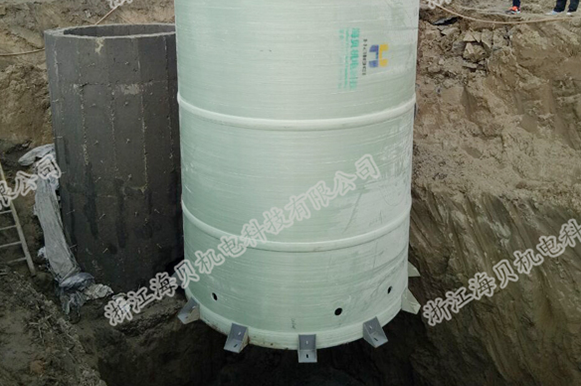 泵站筒體結(jié)構(gòu)由纖維纏繞玻璃鋼制成,采用意大利VEM公司的設(shè)備,全自動化控制連續(xù)纏繞成型,內(nèi)部配件使用SUS304和熱鍍鋅等防腐材料,工控設(shè)計采用施耐德電氣,觸摸屏設(shè)計,含有RS485接口。